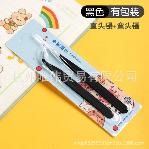 Black straight and curved tweezers set