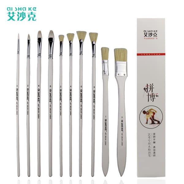 Ai Sha Ke Hog Hair Brush Set - 10 Pieces Oil and Acrylic Paint